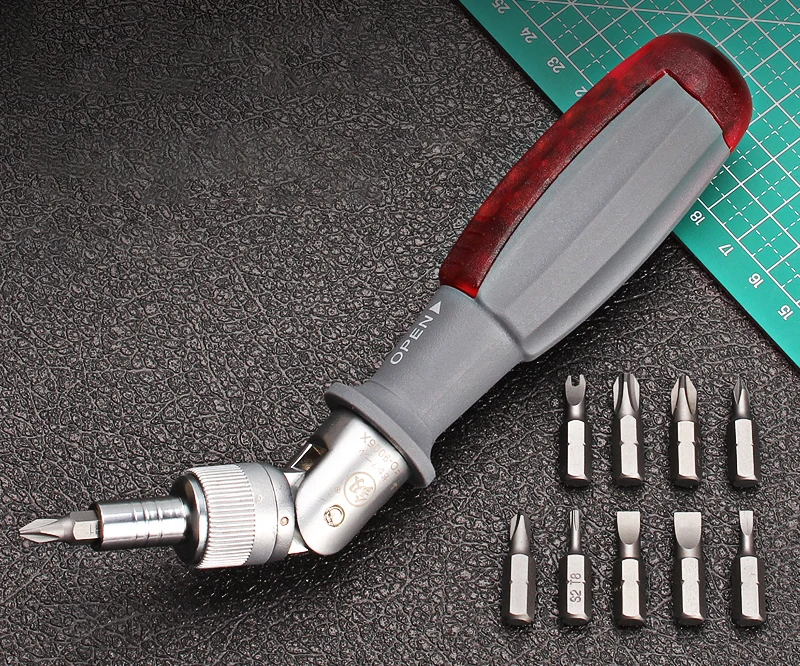 Multifunction Ratchet Screwdriver 180 Degree Inside Hexagon Adjustable Angle Mini Rapid Ratchet Screwdriver 10pcs Bits